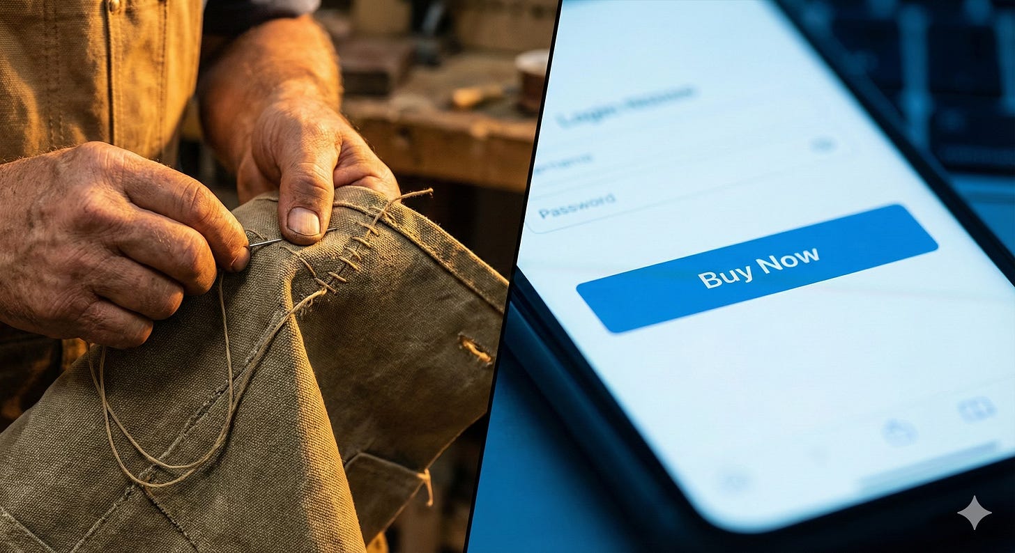 Then the video cut to the modern equivalent: someone tapping a screen to buy a pair of $5.95 pants from a fast-fashion retailer. The buyer purchases without thinking, wears the item once, maybe, and discards it the moment a button pops or the trend fades.