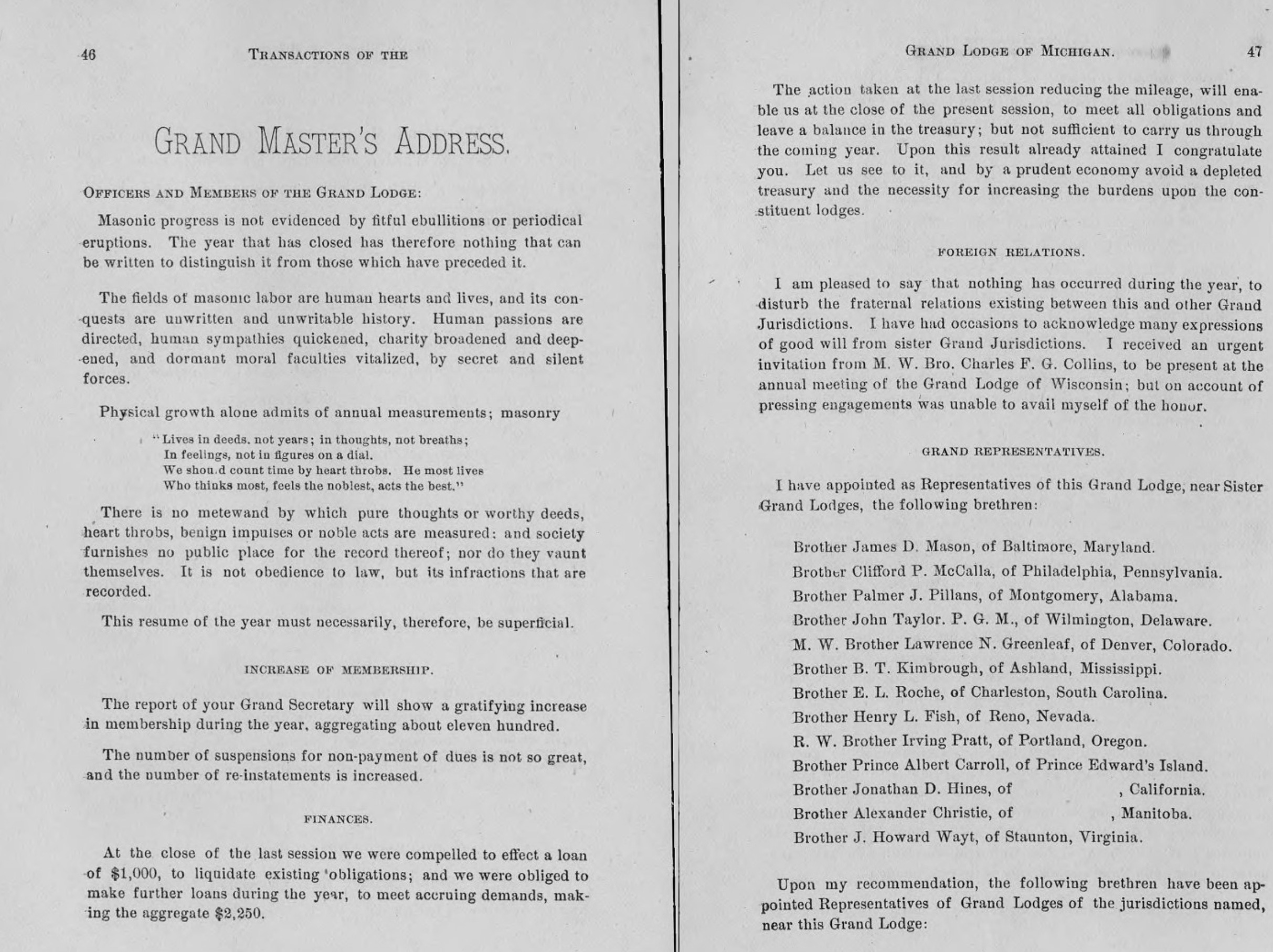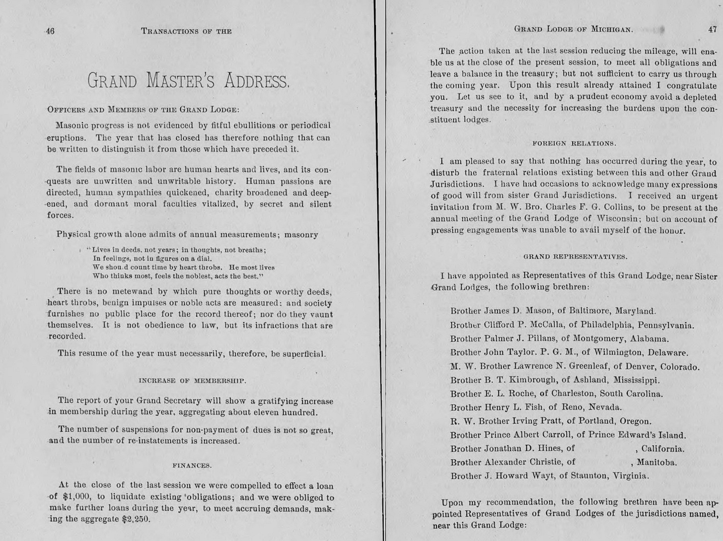 In 1881, the Grand Master of Michigan stood before his assembled brethren and apologized.